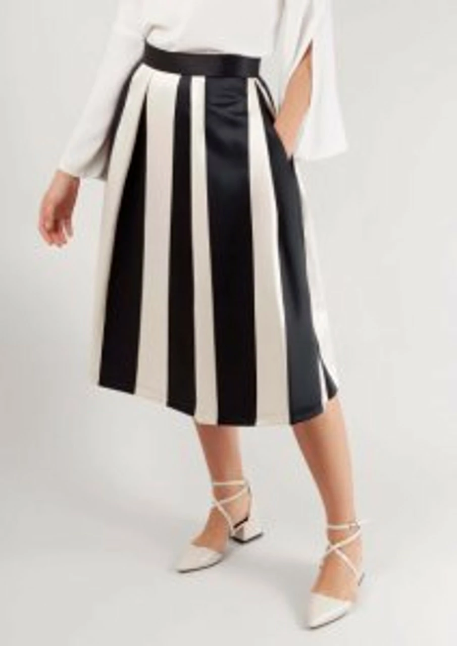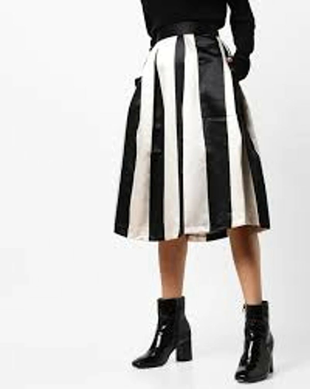 Details: Exquisite, layered pleats, Flared cut hem, High rise waist, Side pockets, Cinched waist
