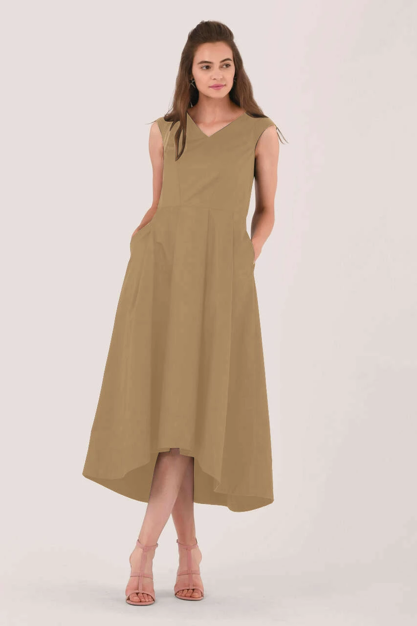 Details: Elasticated waist, Maxi, Pleats on skirt, High-low skirt, Versatile full skirt dress, Side pockets