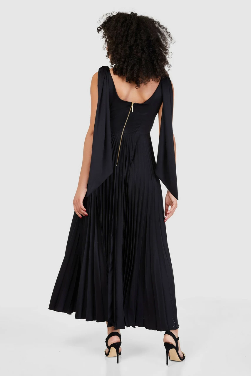 Details: Pleated skirt, Drape details, Fit & flare hemline, Scoop back neckline