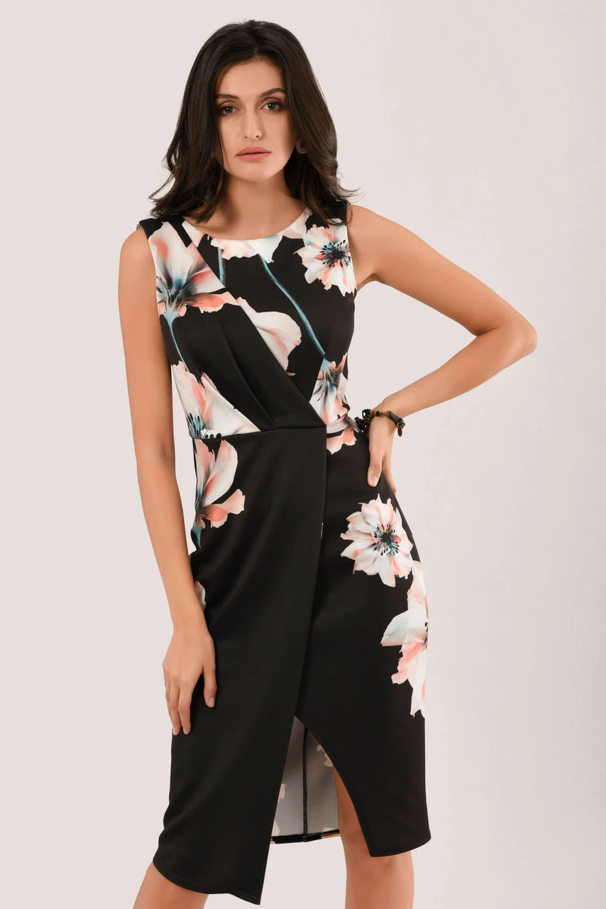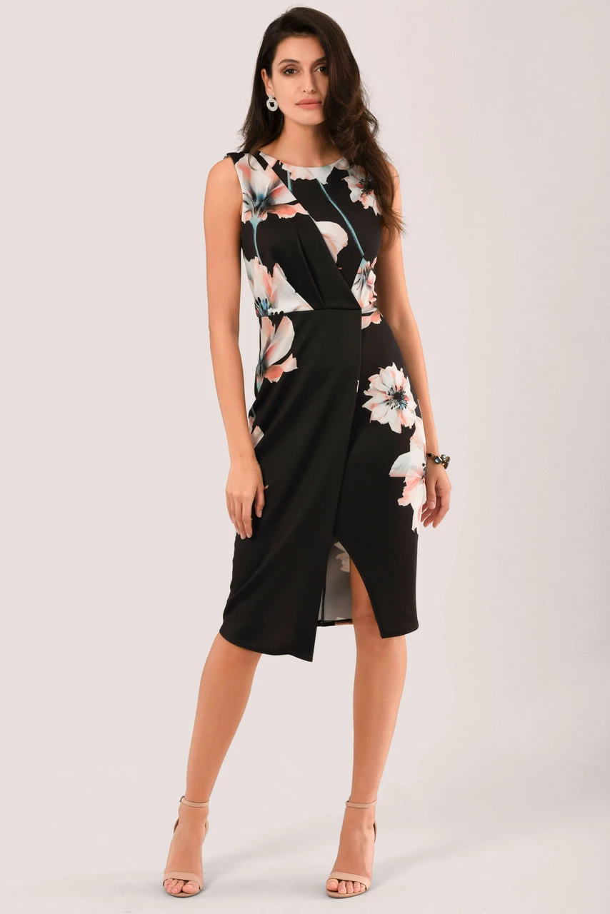 Details: Floral print, Wrap front, V- back neckline, Drape front, Slit front, Bodycon fit