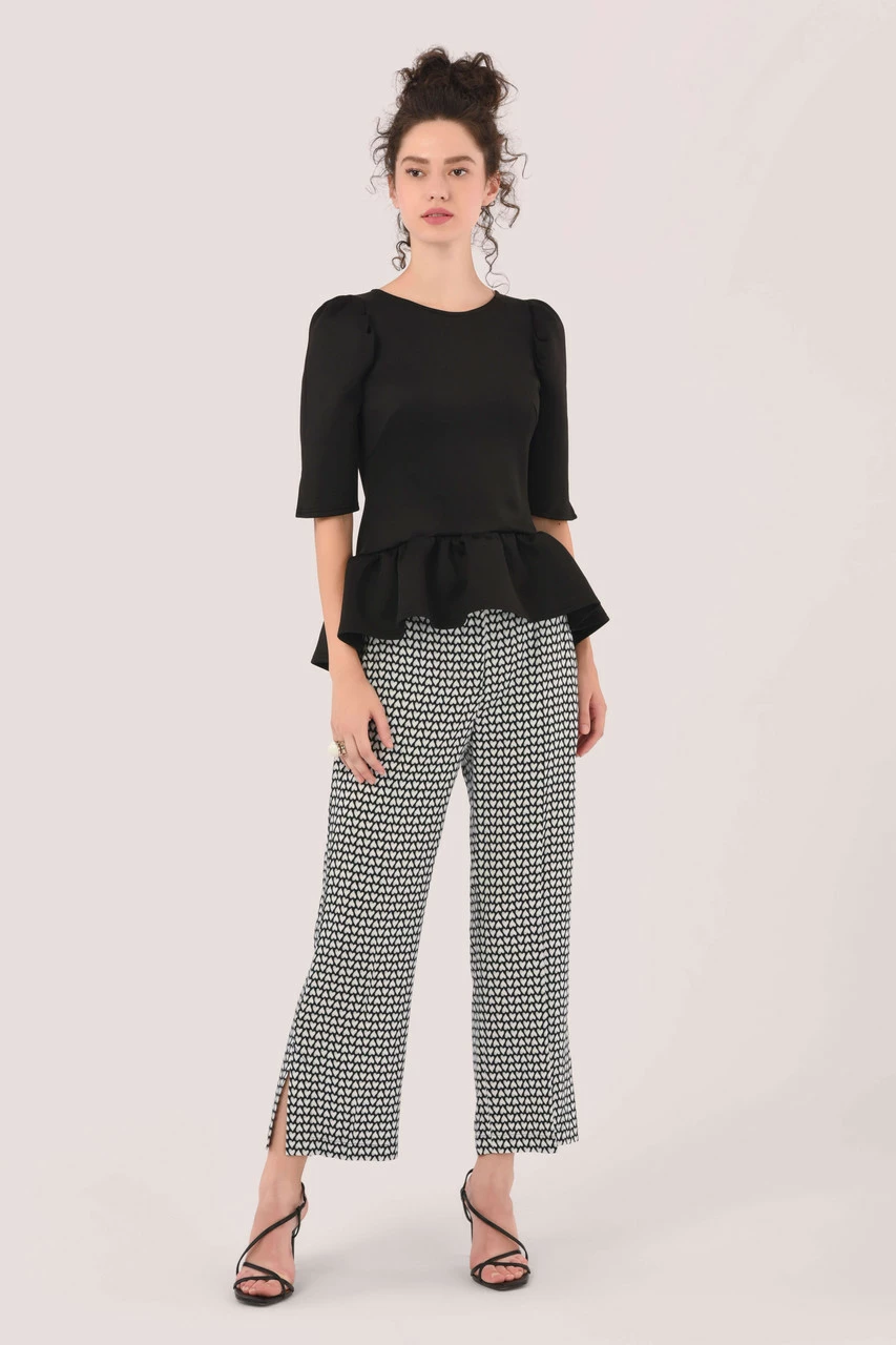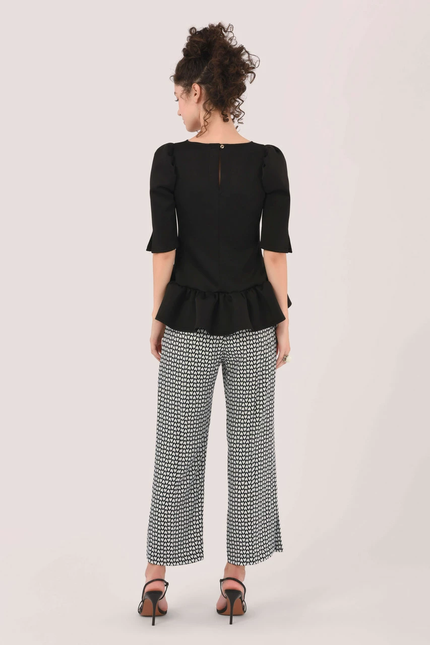 Details: Puff sleeves, Gathers on shoulders, Tiered hemline, Peplum shape