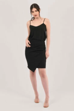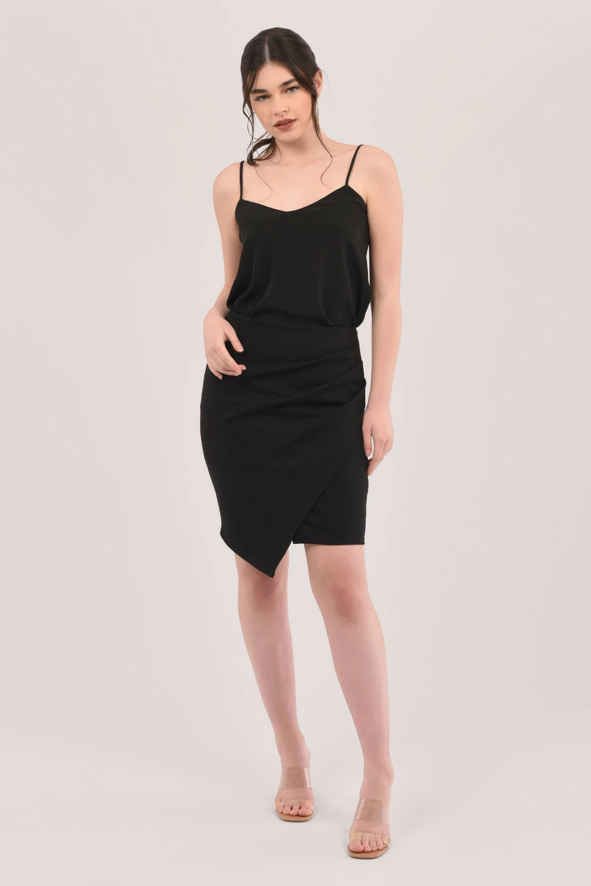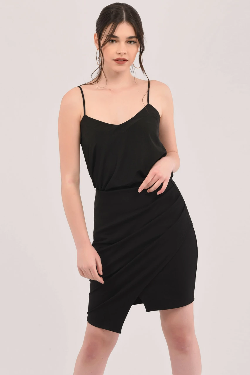Style: Pleated Pencil Wrap Mini Skirt