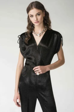 Details: Wrap front, Straight Leg, Tie up sleeves, Side pockets