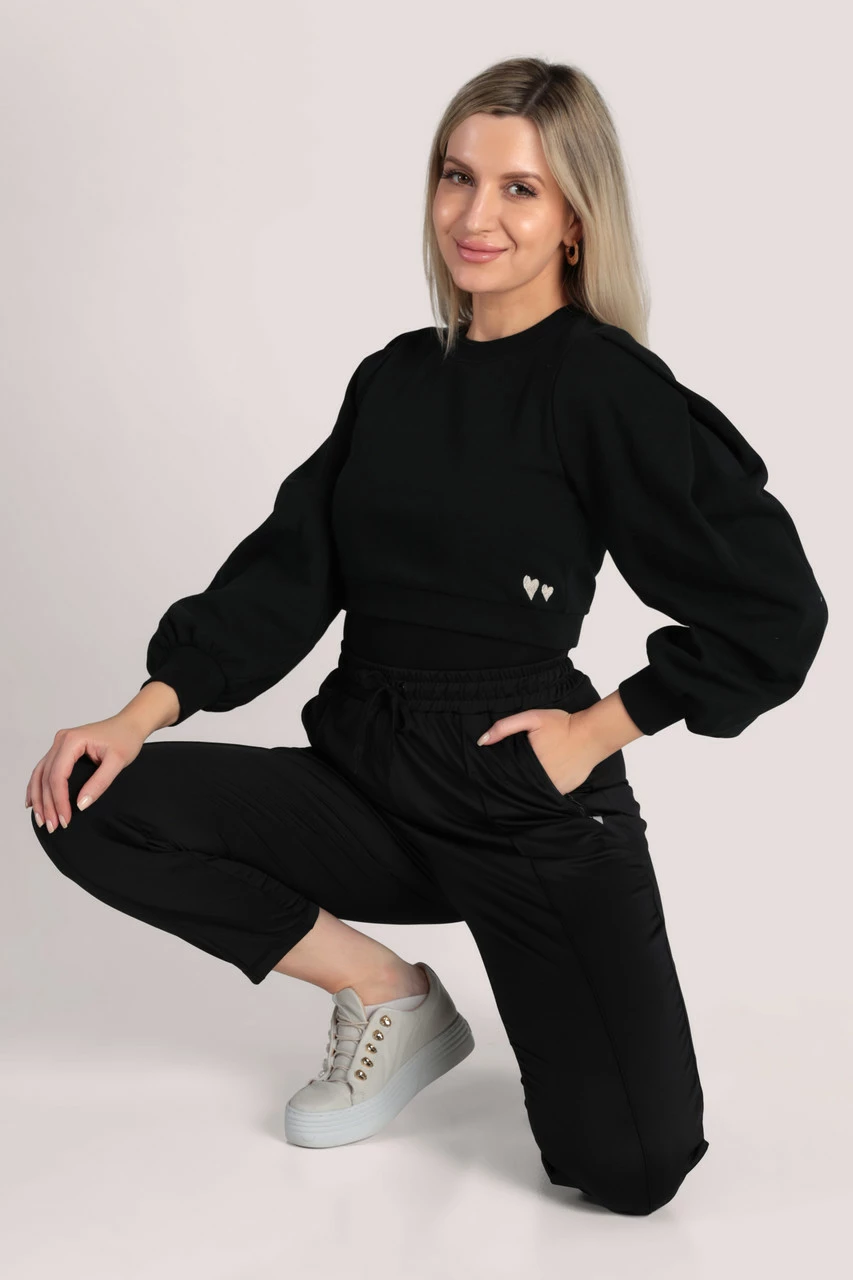 Details: Side pockets, Elasticated waist, Tapered Leg, Slim fit, High waist, Below Side zip, Heart embroidery