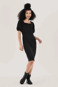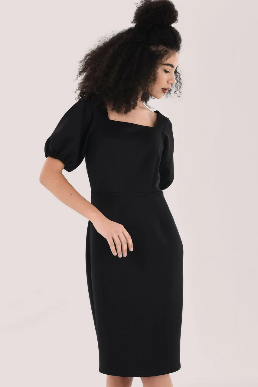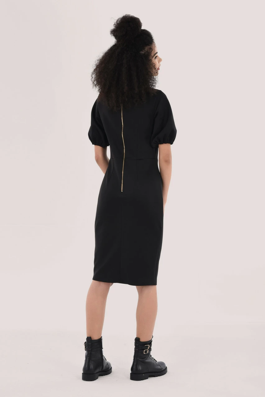 Details: Puff sleeves , Elasticated ends, Fitted skirt , Pencil style silhouette, Slim fit , Bodycon fit