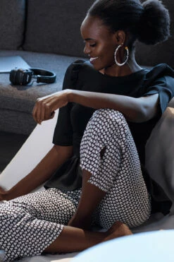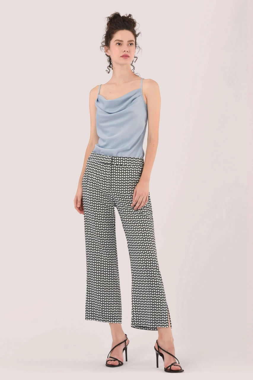 Details: Straight trousers, High waist, Relaxed fit, Comfortable waistband, Side split detail