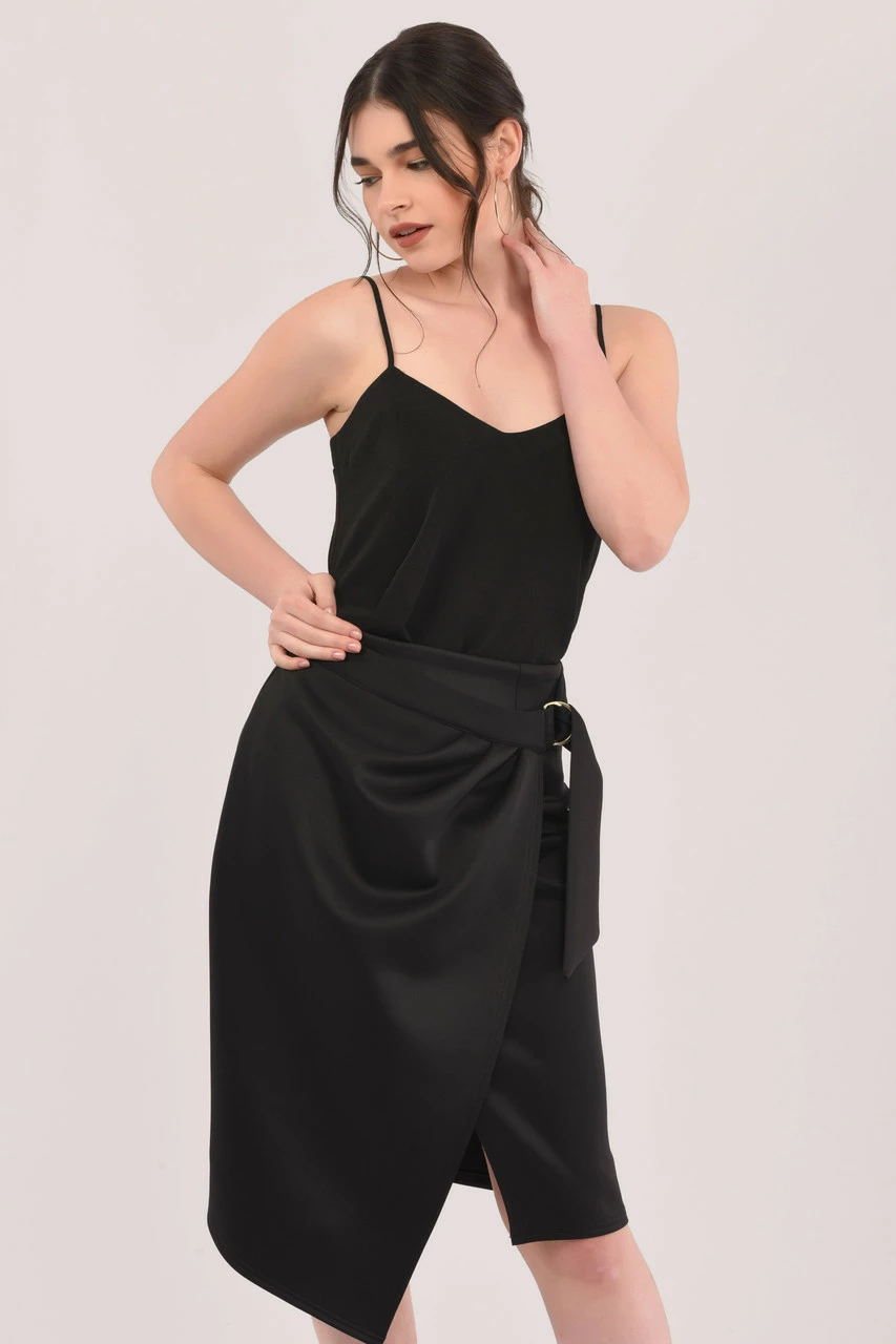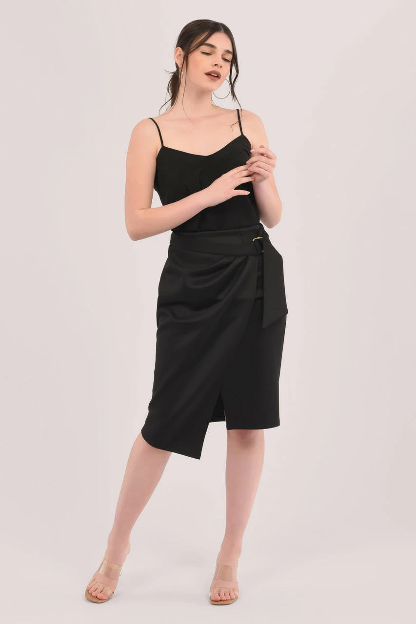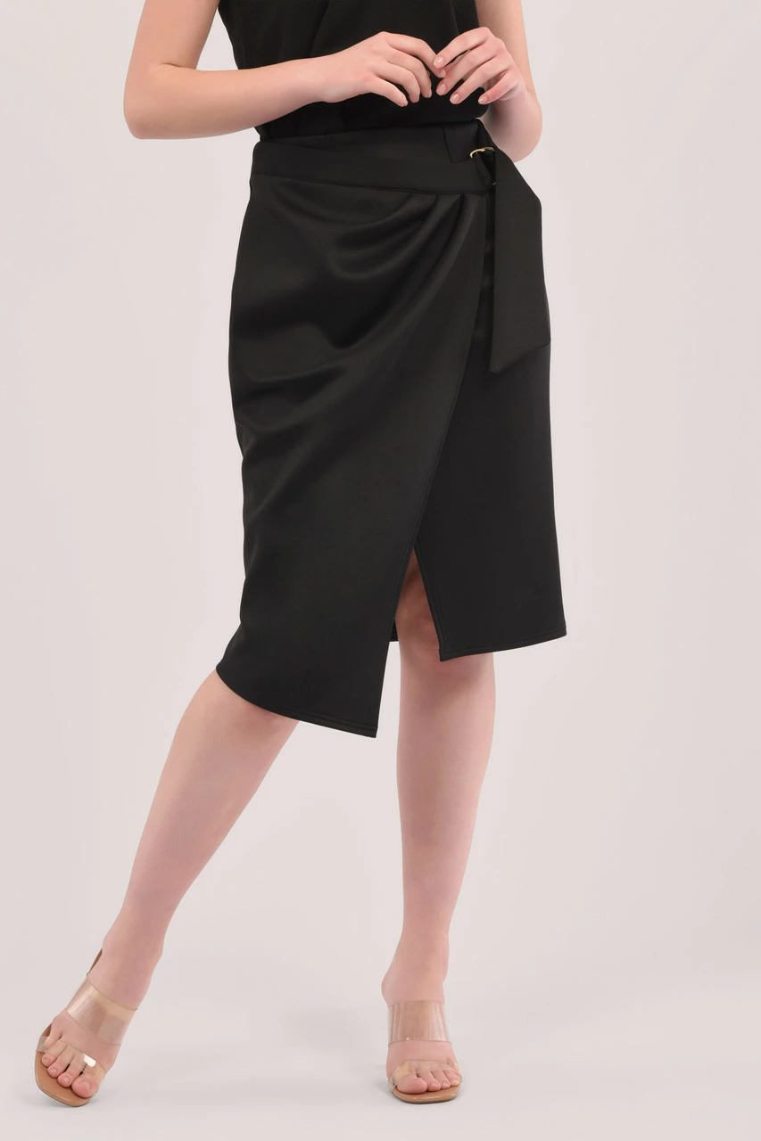 Details: Exquisite Wrap details, Overlapping panels ,High rise waist, Slim fit, Tulip silhouette, Elasticated waistband, Belt included