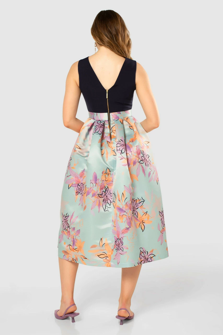 A classic Closet London 2-in-1 sleeveless Dress with a box pleat Satin skirt and a navy contrast top
