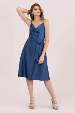 Details: Cami adjustable straps, A- line silhouette, Tie up waist