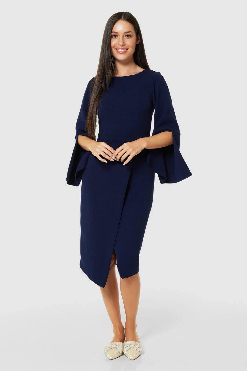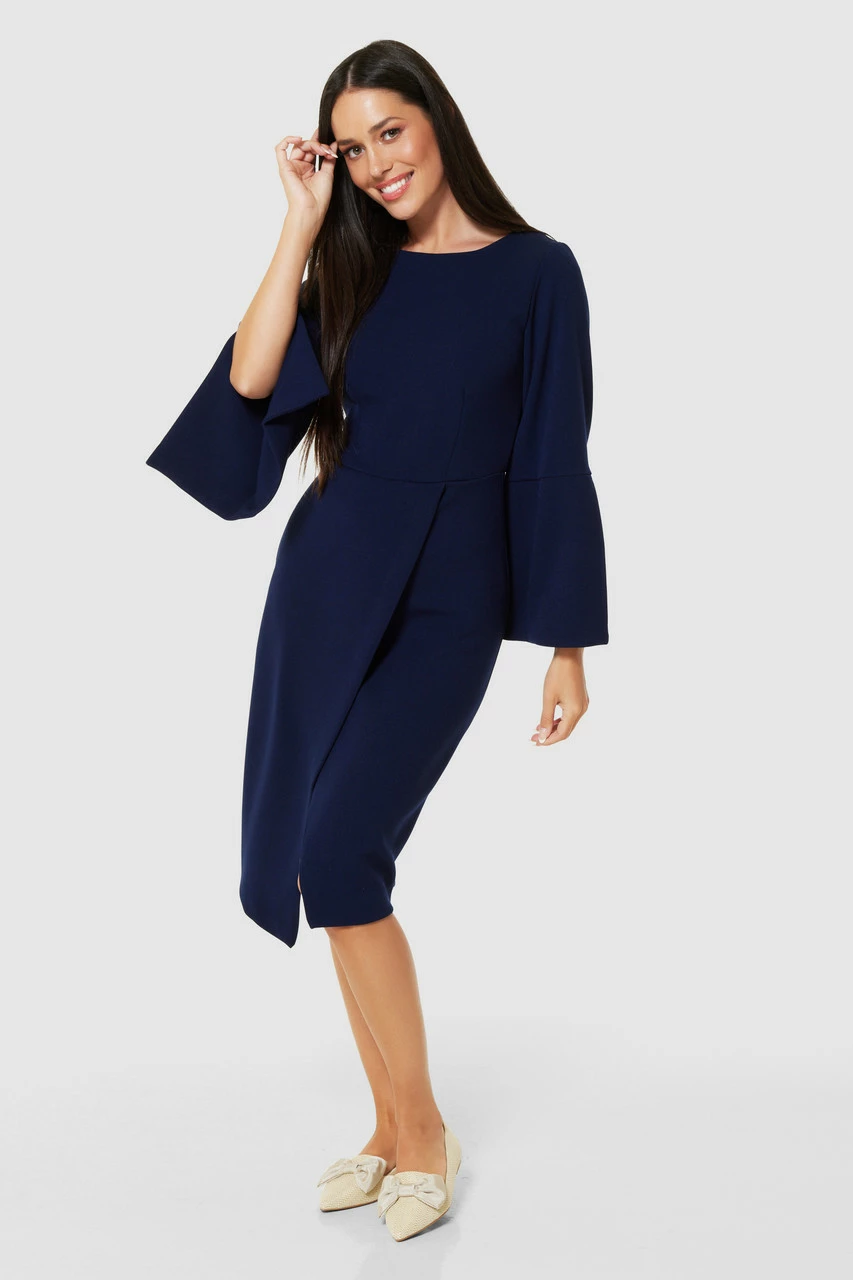 Style: Flared Sleeve Pencil Midi Dress