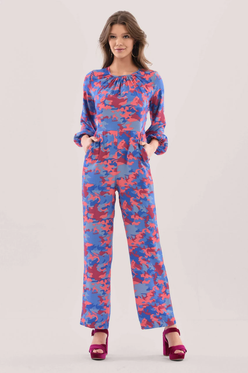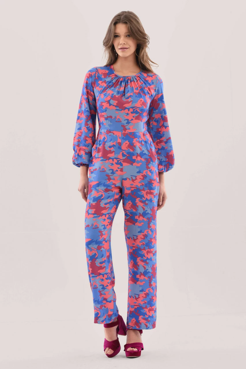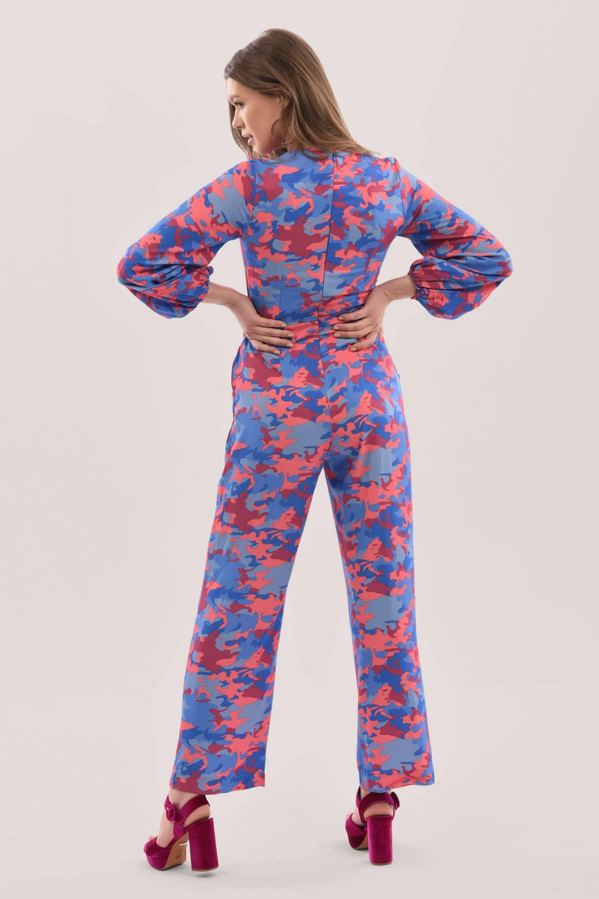 Details: Side pockets, Camouflage print, Puff sleeves, Elasticated cuffs, Gathers on shoulders & neck, Wide leg