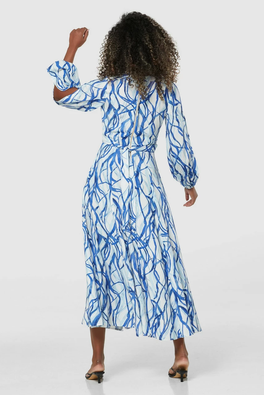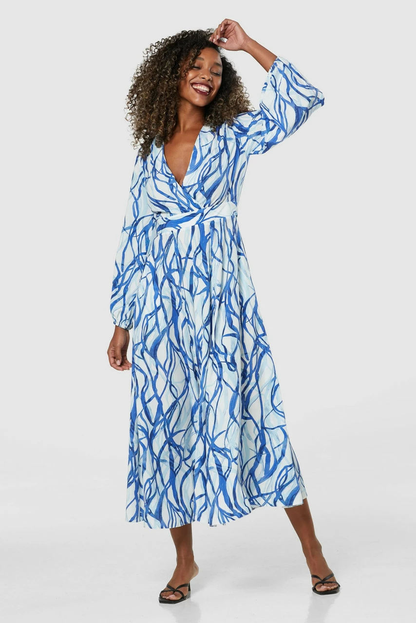 Our bestselling wrap Dress with a full panelled skirt, two front splits in a striking Viscose print.
