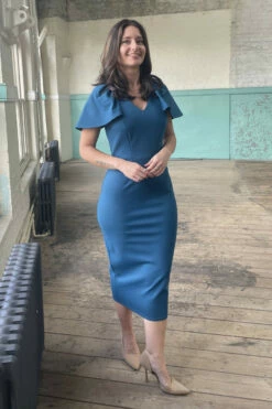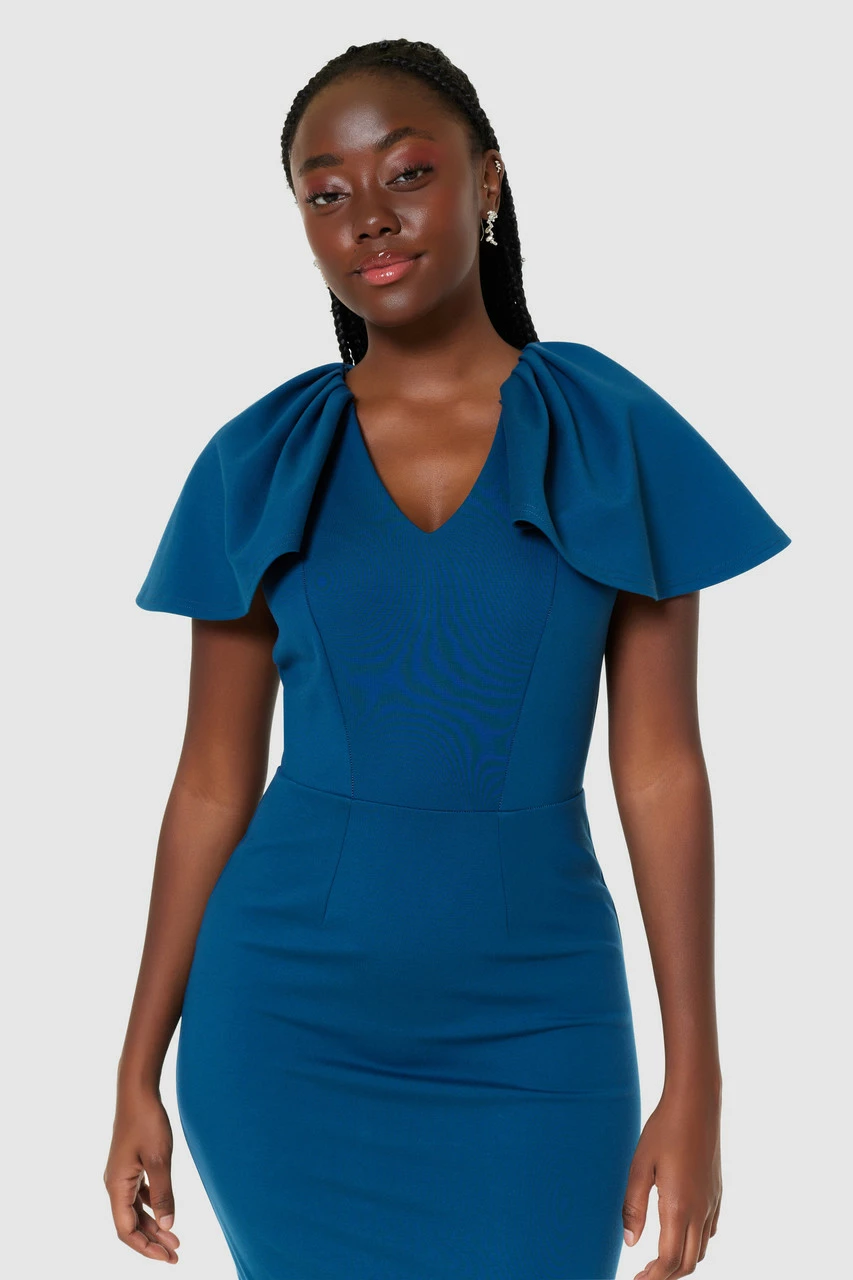 This midi bodycon dress is a sleek and stylish choice that is perfect for dressing up or down. The Ponte fabric hugs your curves in all the right places, while the midi length adds sophistication. The dramatic cape sleeves make this dress perfect for any occasion, whether you’re headed to the office or a night out. It’s a wardrobe essential.
