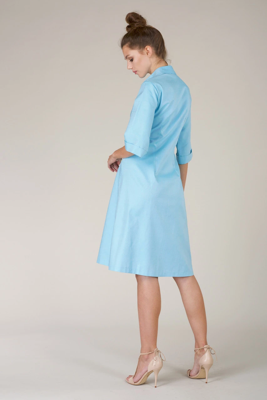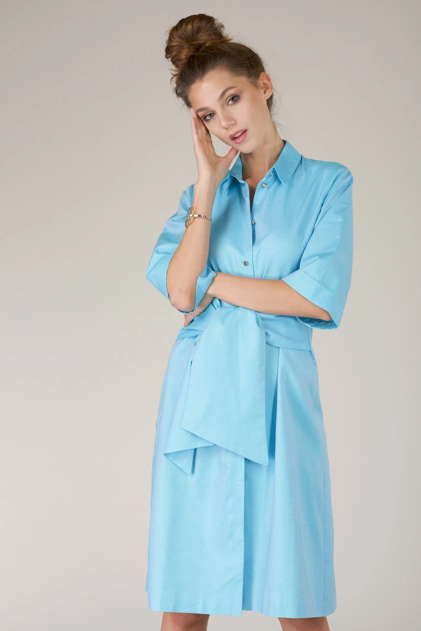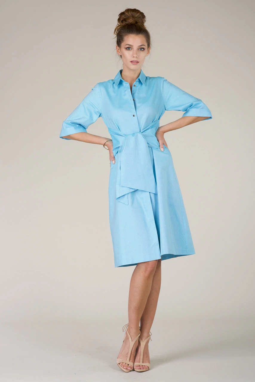 This blue chambray dress is a feminine twist on the classic shirt. With a tie at the waist, this is a structured yet classy look that can be dressed up or down, depending on the occasion.