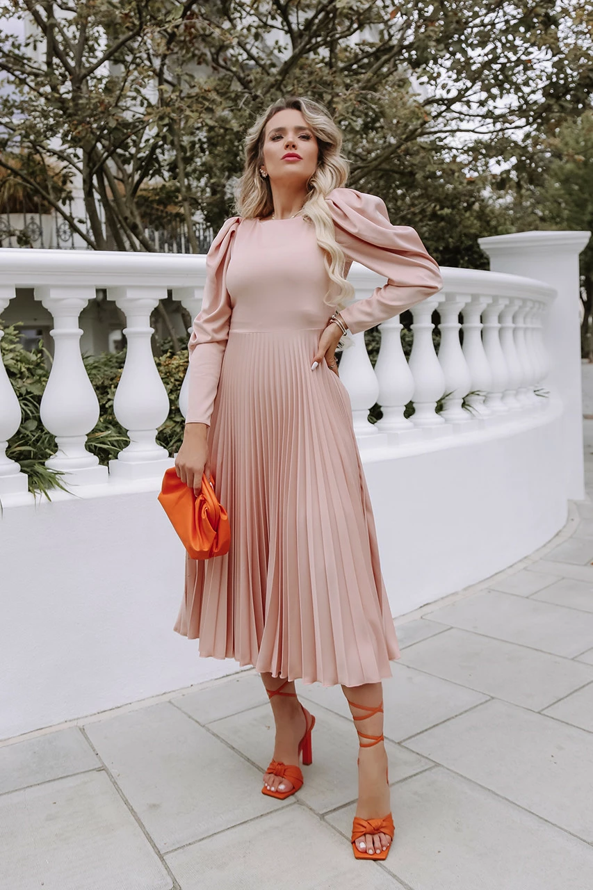 Details: Puff sleeves, Gathered shoulders, Simple bodice, Puff sleeve, Pleated skirt, Fit & flare hemline