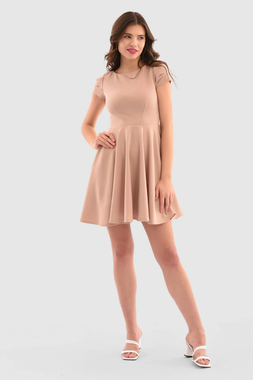 Details: Flared skirt, Cap sleeves, Refined shape, Waist fitted