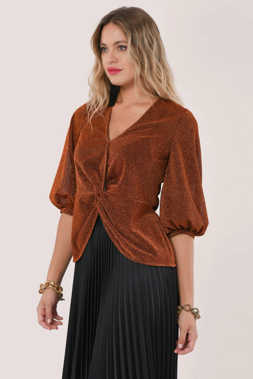 Details: Twisted top, Puff sleeves, Cuff detailing