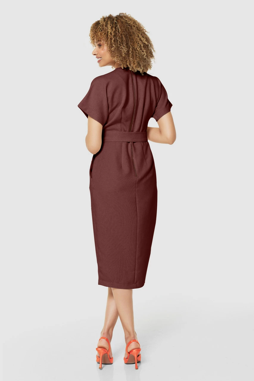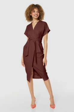 Details: Tie waist front, Side pockets, Wide sleeves, Wrap front, Cut slit front, Tulip style skirt, Kimono sleeves