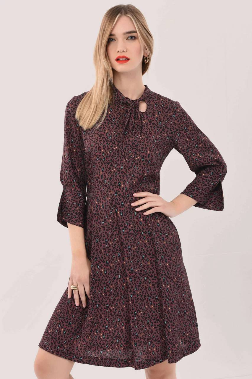 Details: Flare & fit skirt, Structured silhouette, Open cut details, A-line silhouette, Animal print