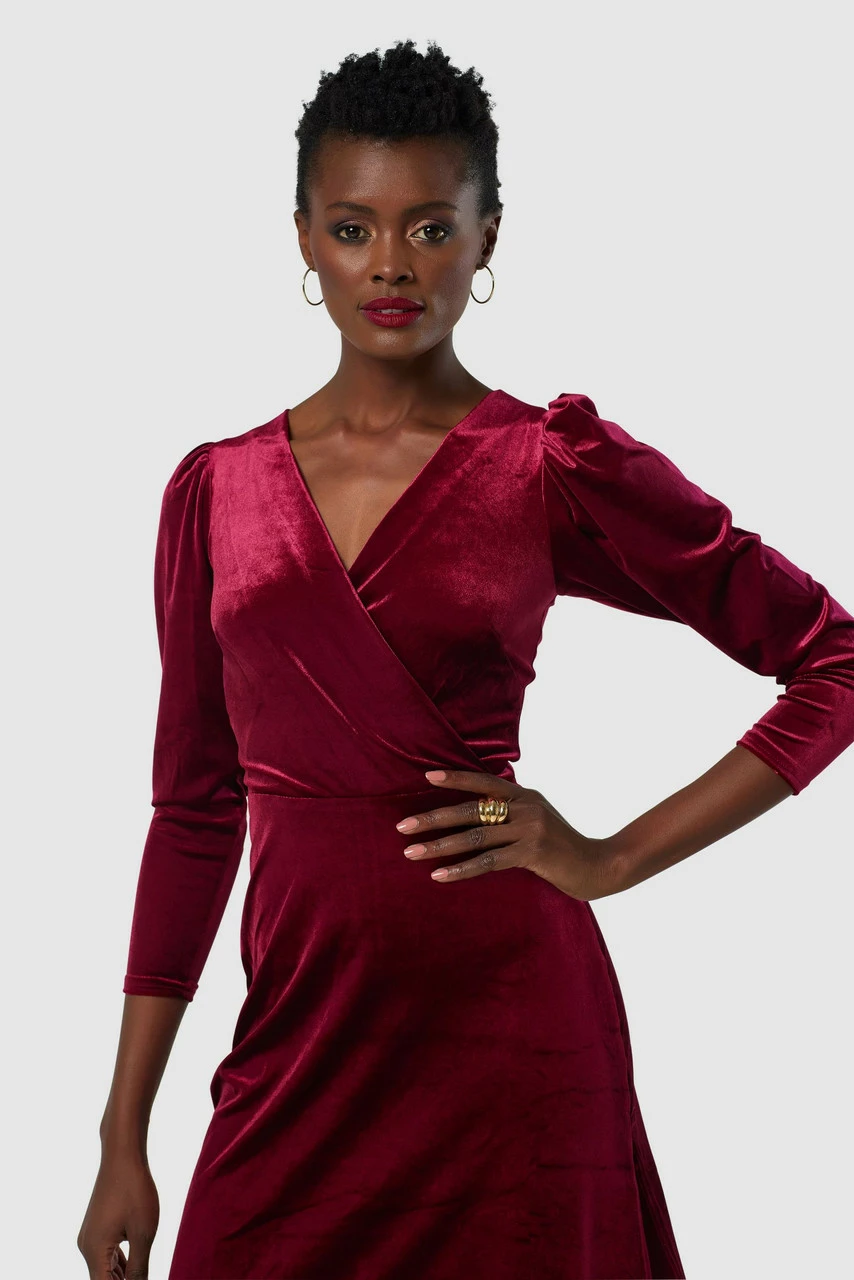 Details: Puff sleeves, Gathers at shoulders, A -line silhouette, Wrap front, Pleated sleeves