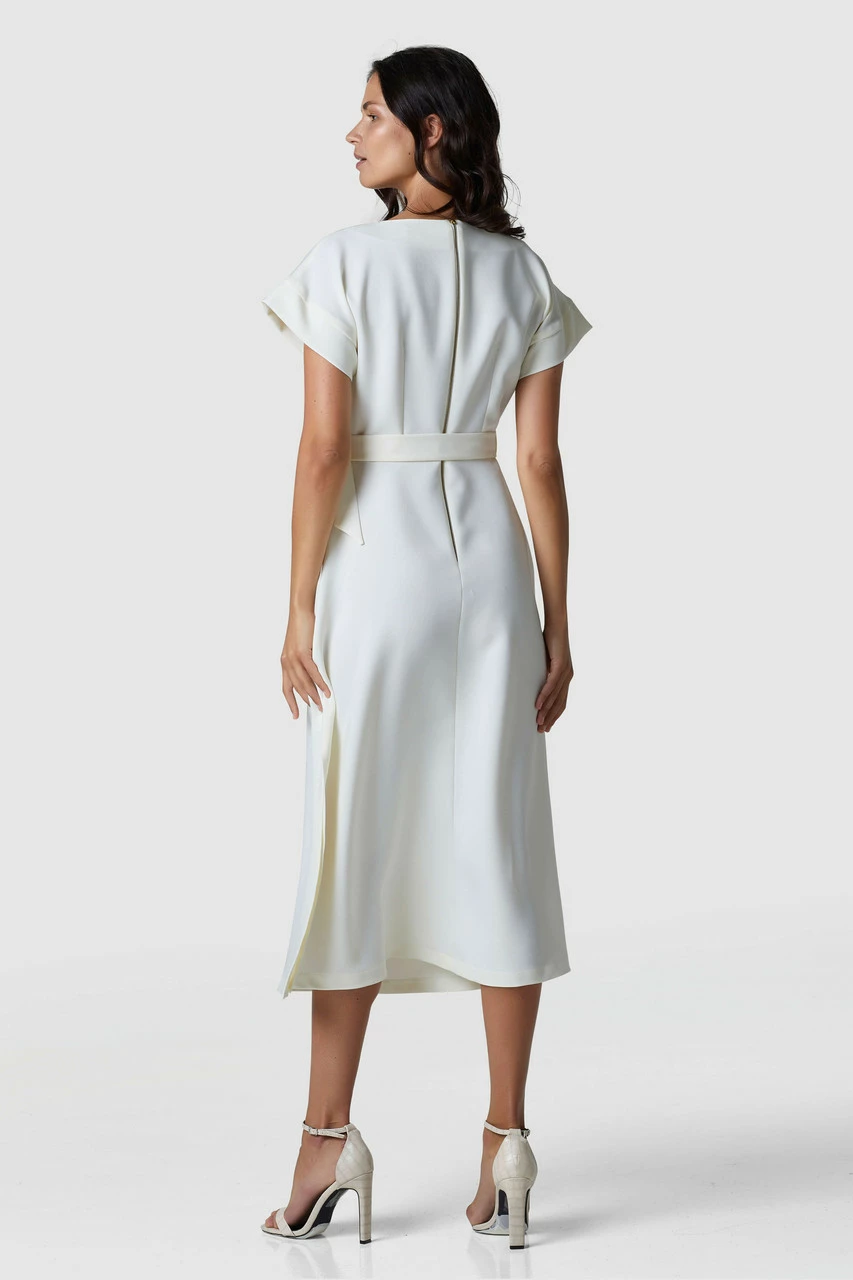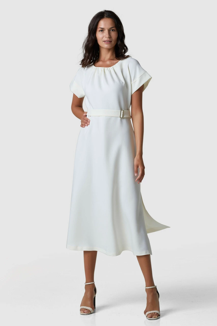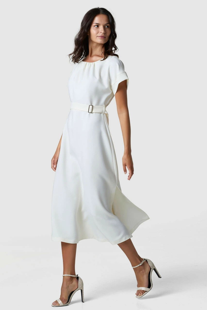 Closet London Gathered Kimono Dress. Our classic, timeless gathered neck on this dress, with our tie and buckle adds an elegant finish, made from 100% Recycled Fabric..