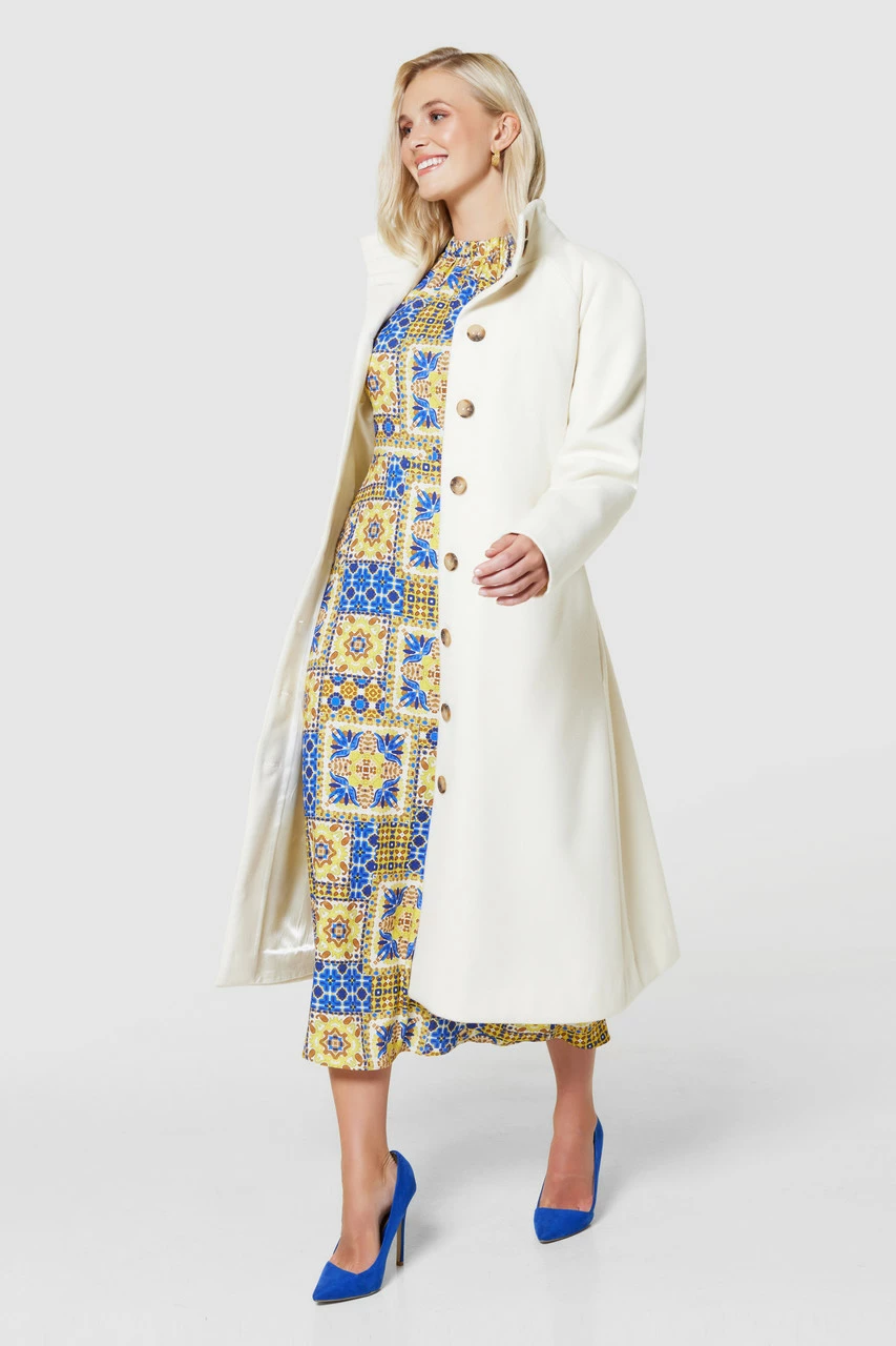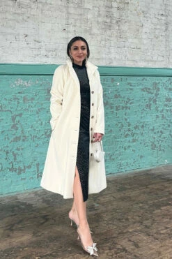Discover timeless elegance Closet London’s Latte Women’s long latte coat. This exquisite long-length coat features delicate button detailing, a classic collar, and a flattering tie waist. Whether its a formal affair or a casual outing, this coat effortlessly enhances your style, making it a must-have addition to your wardrobe too.