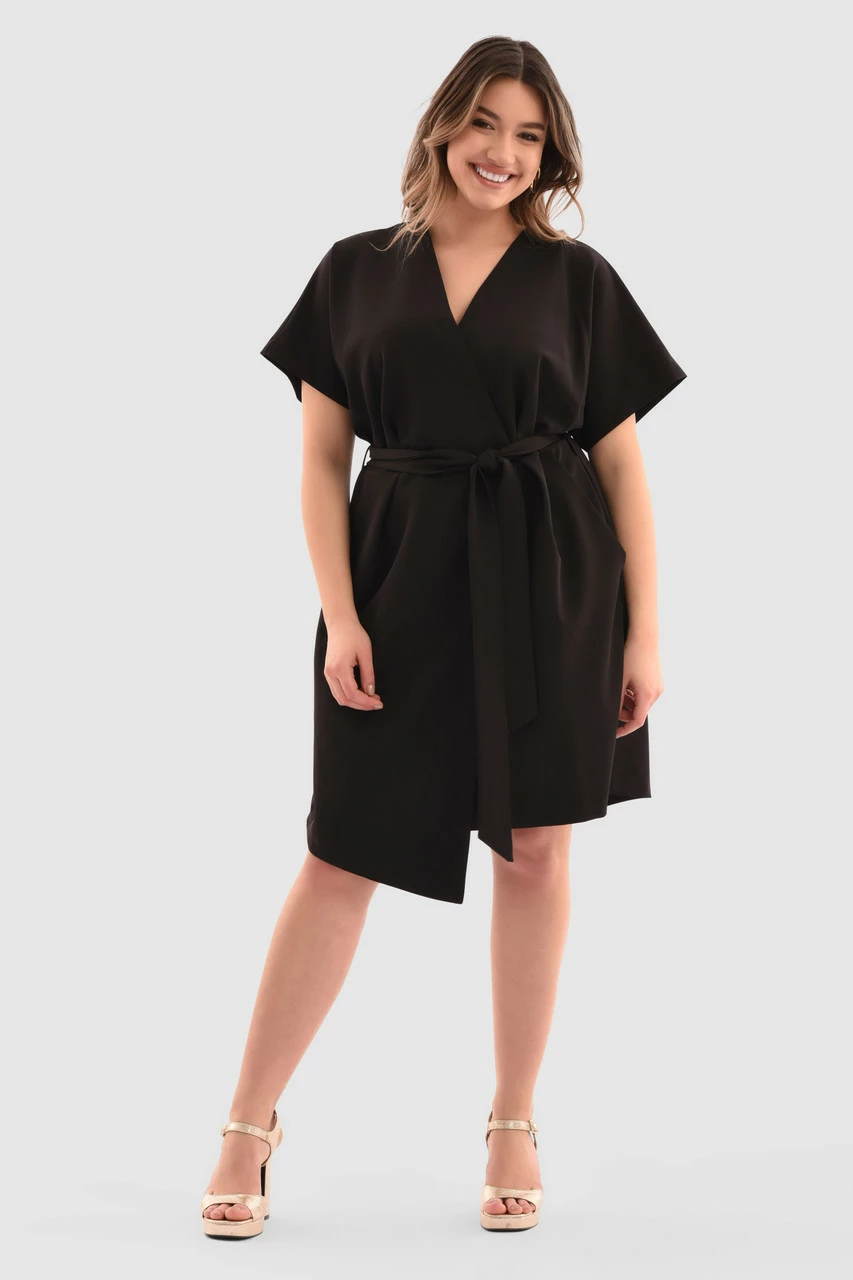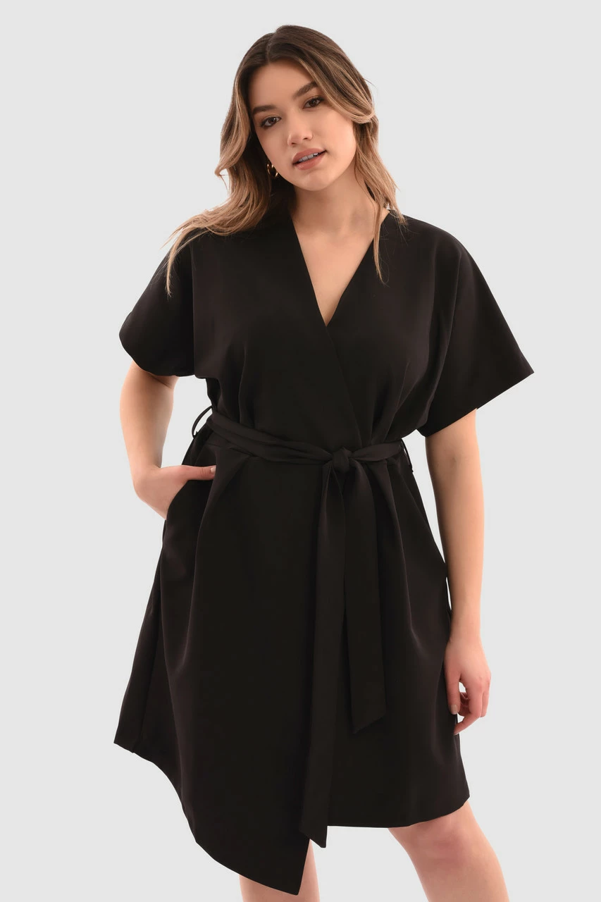 Details: Kimono sleeves, Loose fitting, Wrap front, Belt included, Fitted waistband
