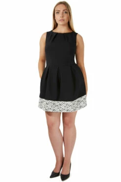 Details: Contrast lace hem, A- line silhouette, Fit & flare hemline, Pleat details, Fitted torso
