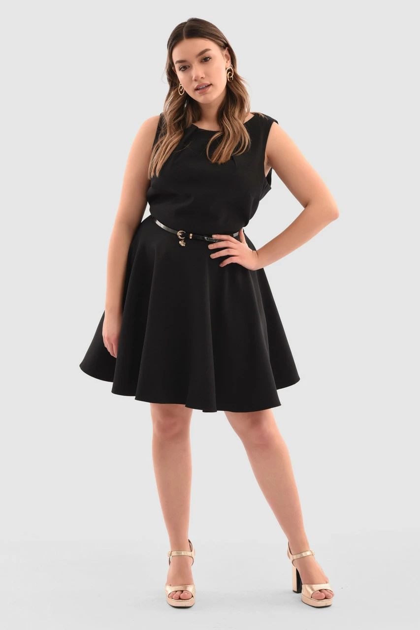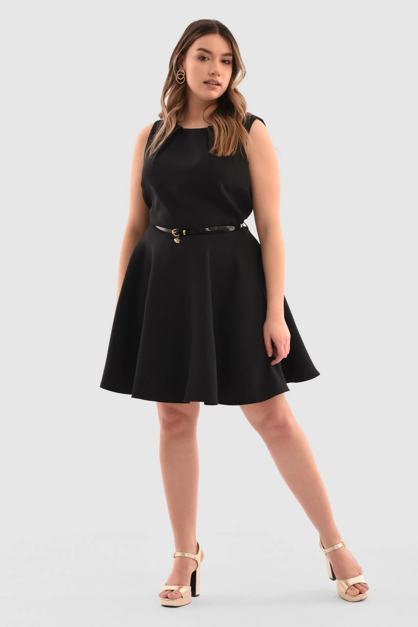 Details: Flared skirt, Refined shape, Waist fitted, Tie up waist, Belt included