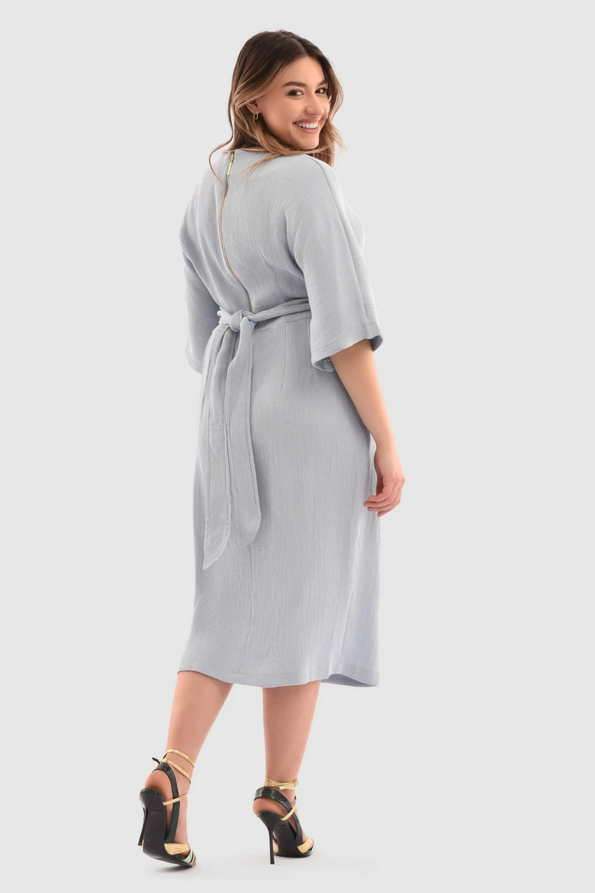 Details: Unlined, Kimono sleeves, Tie back waist, Side slit cut below, Tight waistband