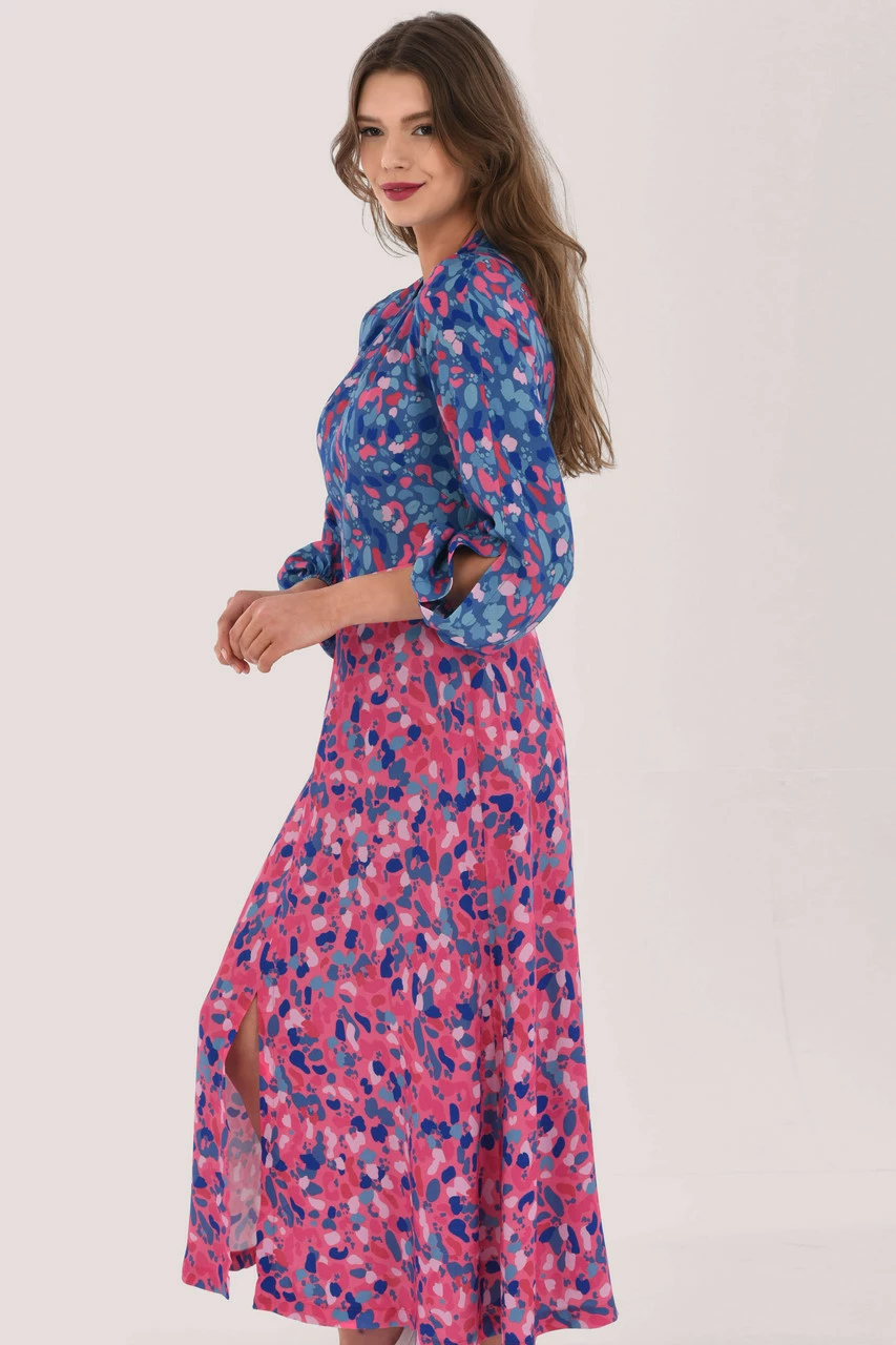Details: Tiered skirt, Puff sleeves, Gathers on shoulders & neck, Elasticated cuffs, A- line silhouette, Split sleeve detail, Front cut slit
