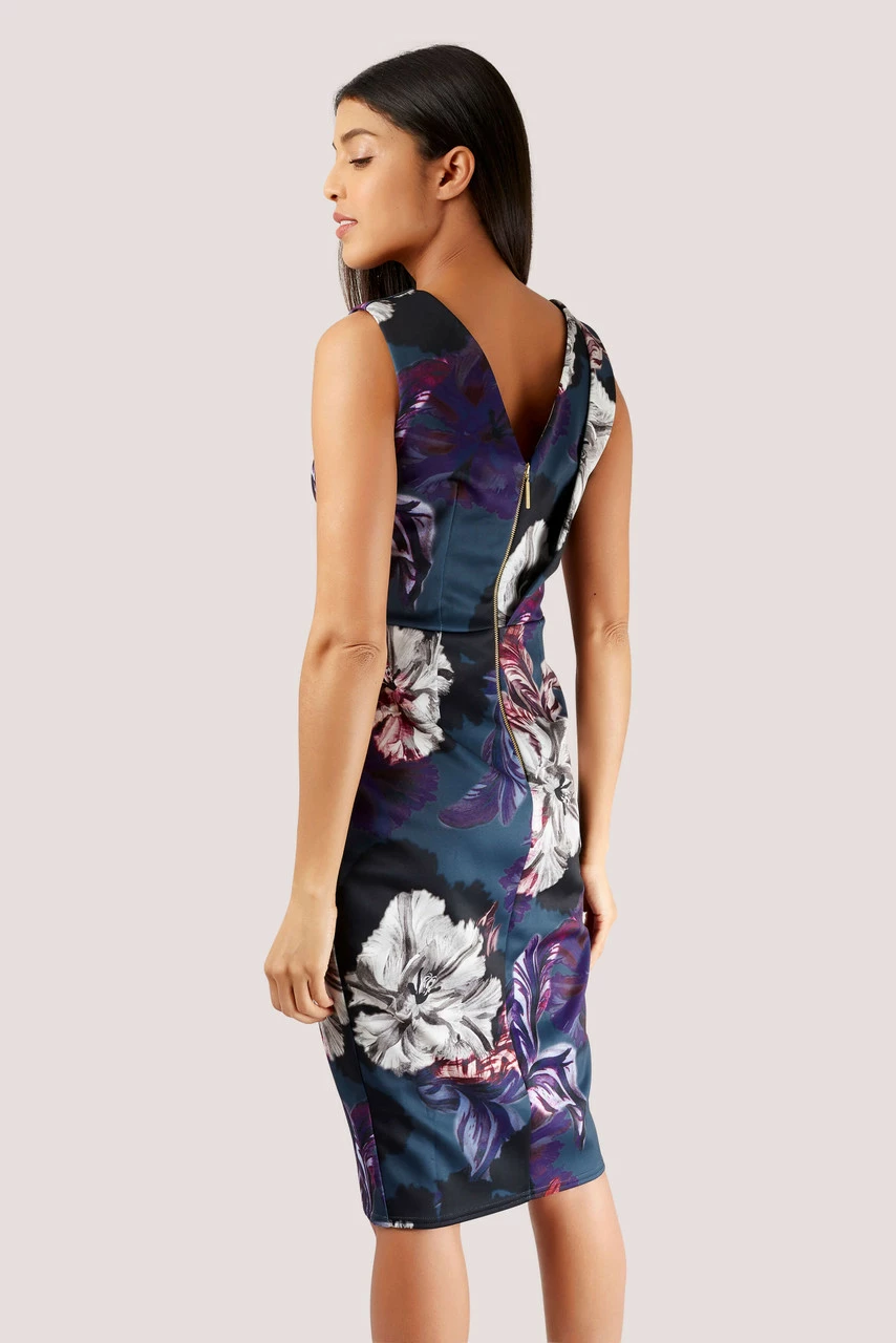 We love the bold floral print in this stretchy scuba fabric. The silhouette accentuates your natural curves.