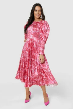Details: Puff sleeves, Gathers on shoulders, Pleats on skirt, Draped shoulders