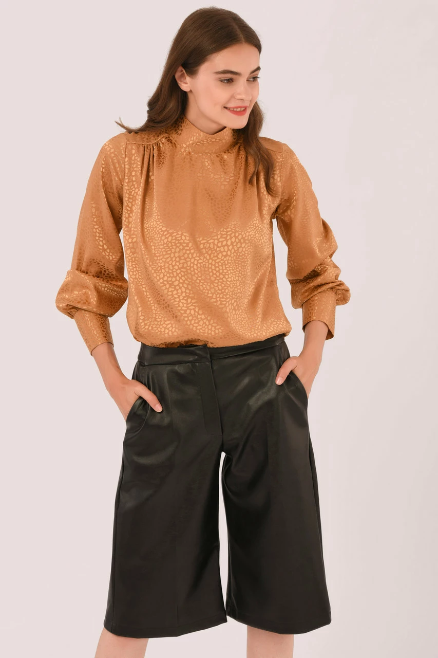 Style: Gathered High Neck Blouse