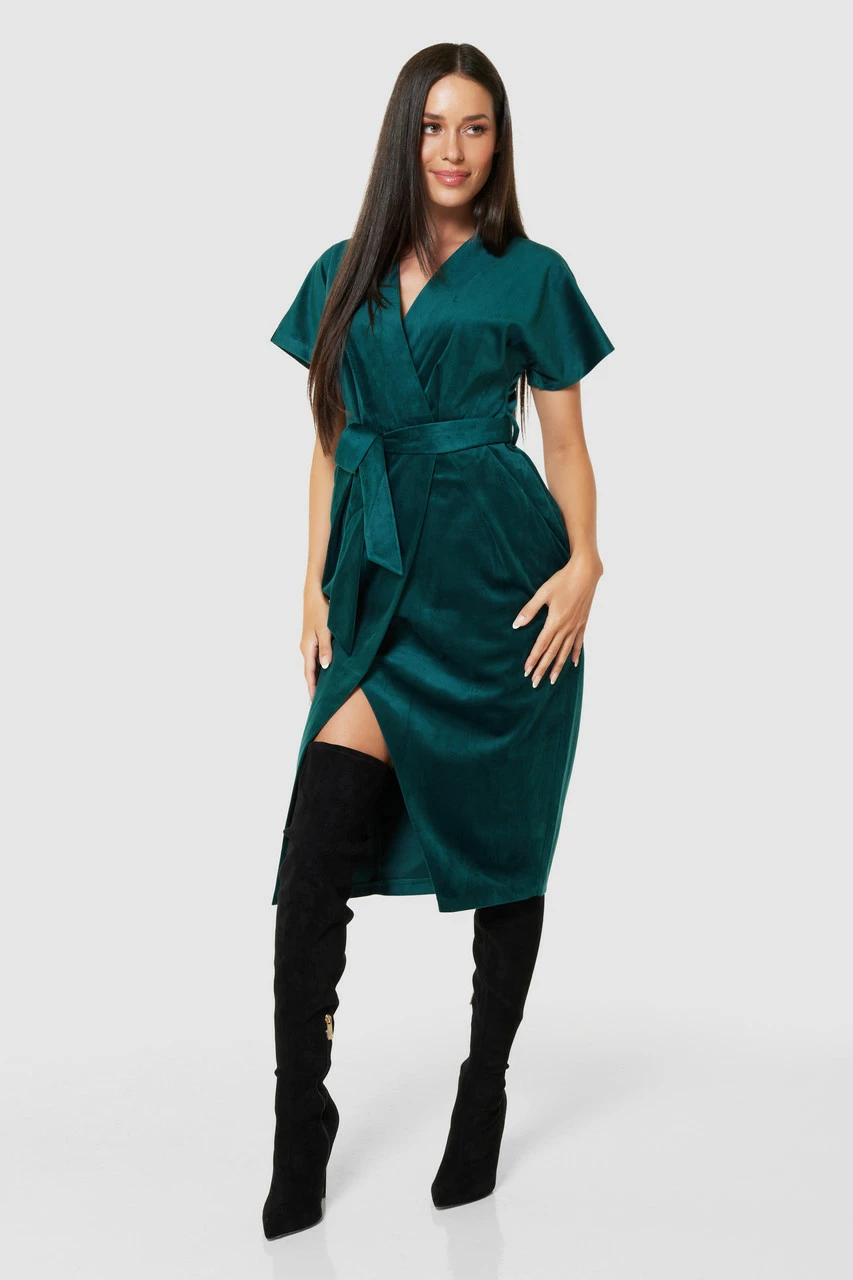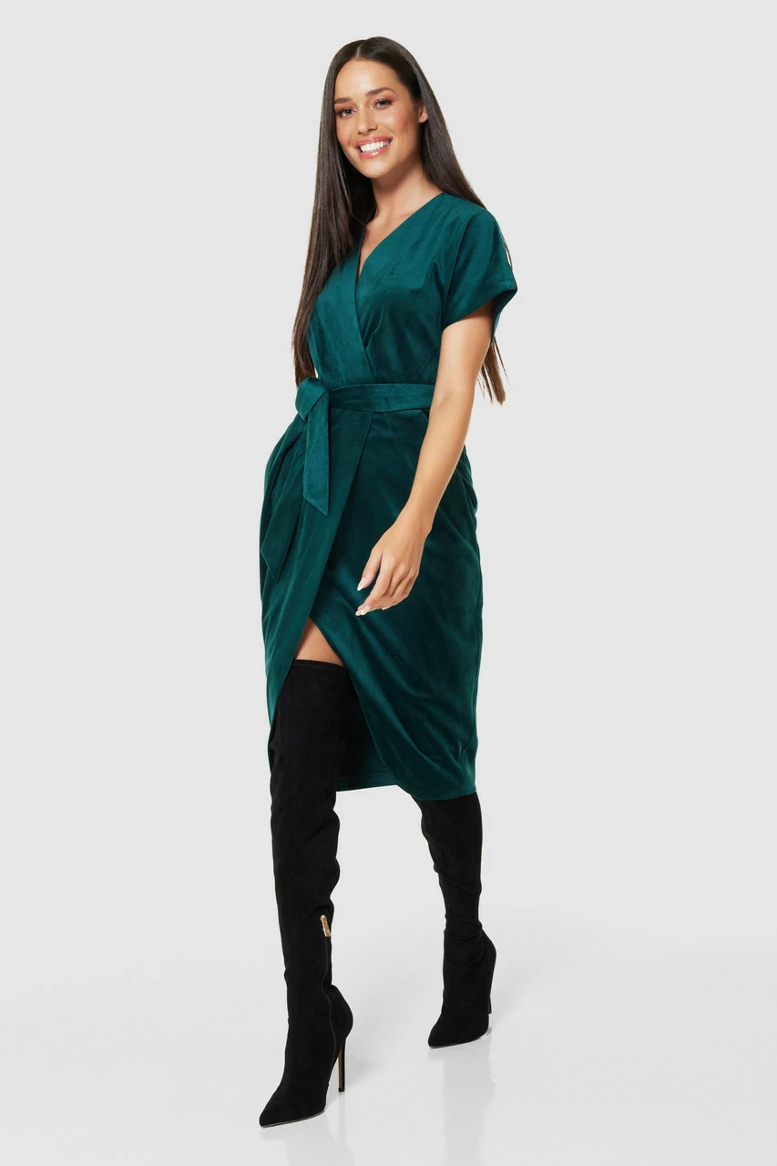 This Wrap pencil midi dress, one of our velour dresses, with a split skirt, kimono sleeves, and a V neckline. This sophisticated outfit is suitable for wearing to work, parties, weddings, and other formal events. For the ultimate night out, pair with some heels or boots.