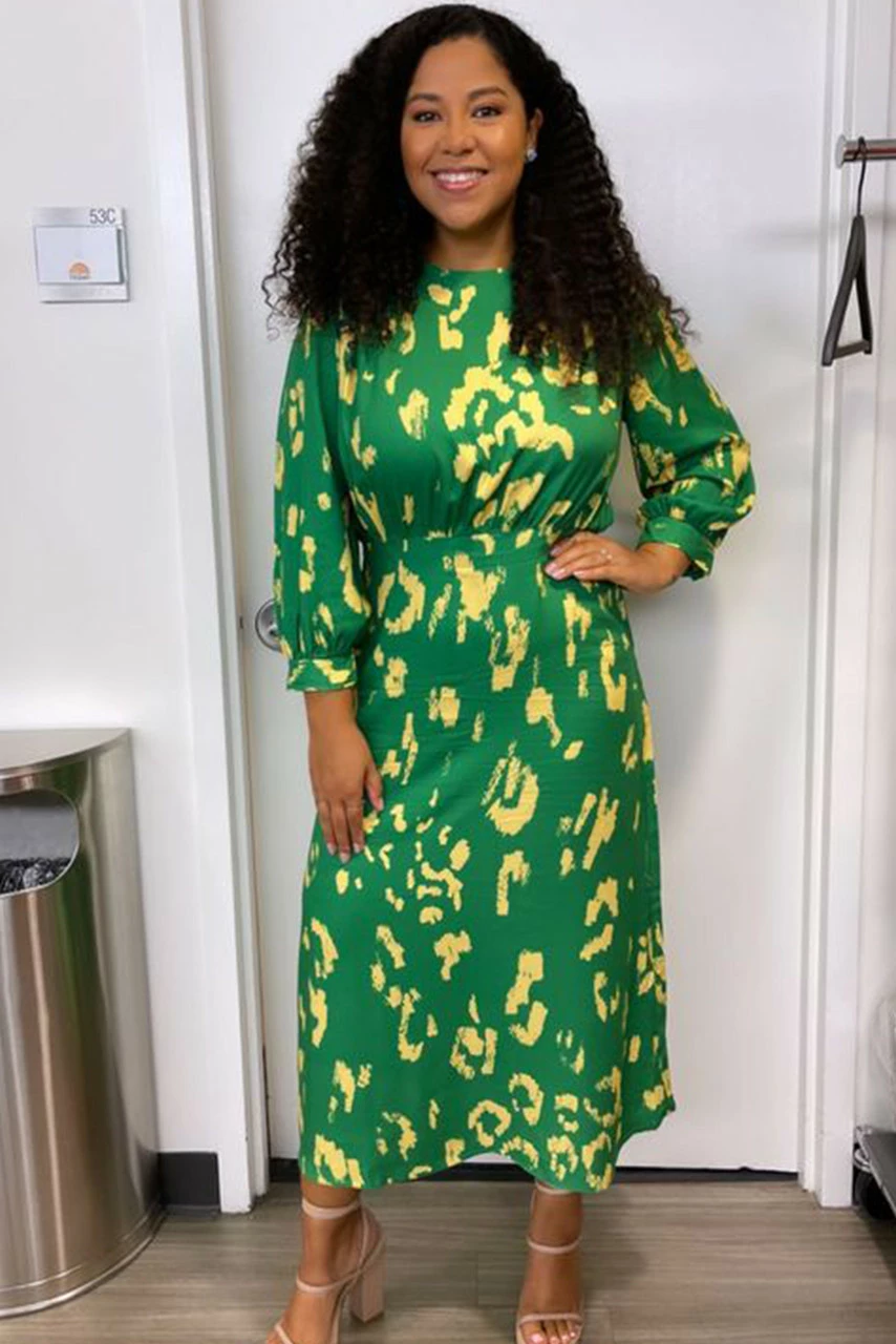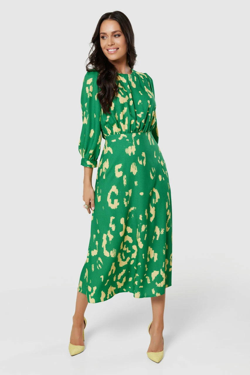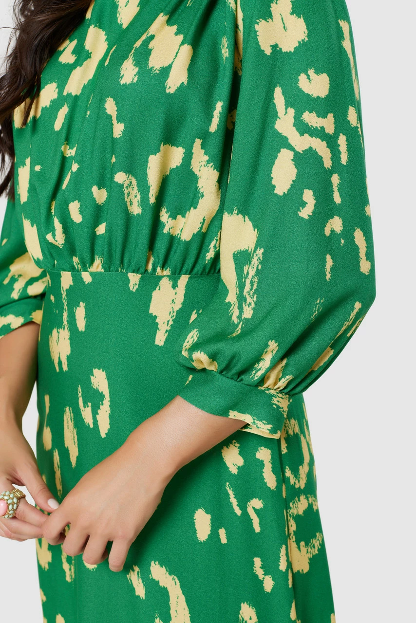 Details: Tie back neck, Puff sleeves, Gathers on shoulders, Waist fitted, V -cut back, Double cuffs, A-line silhouette ,