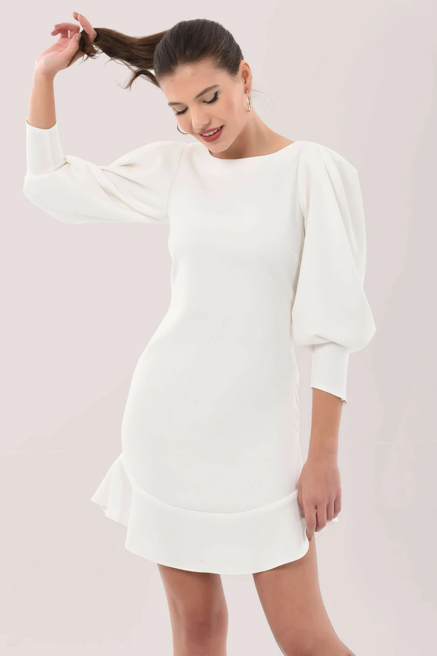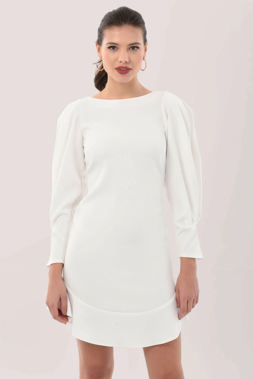 Details: Cuff detail, Gathers at shoulders & neck, A-line silhouette, Voluminous sleeves, Frill hemline, Mini dress