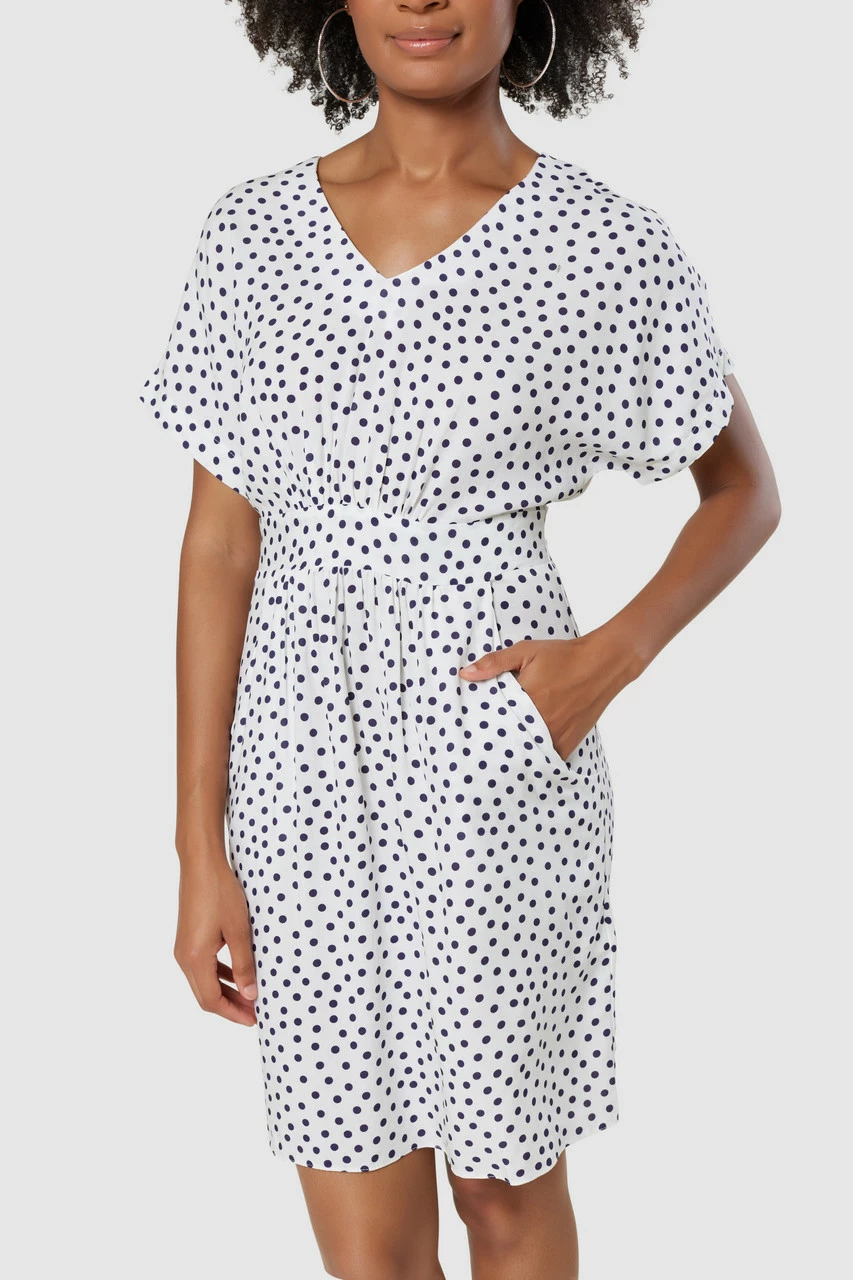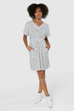 Details: Tie waist back, Side pockets, Round back neckline, Waist pleat details