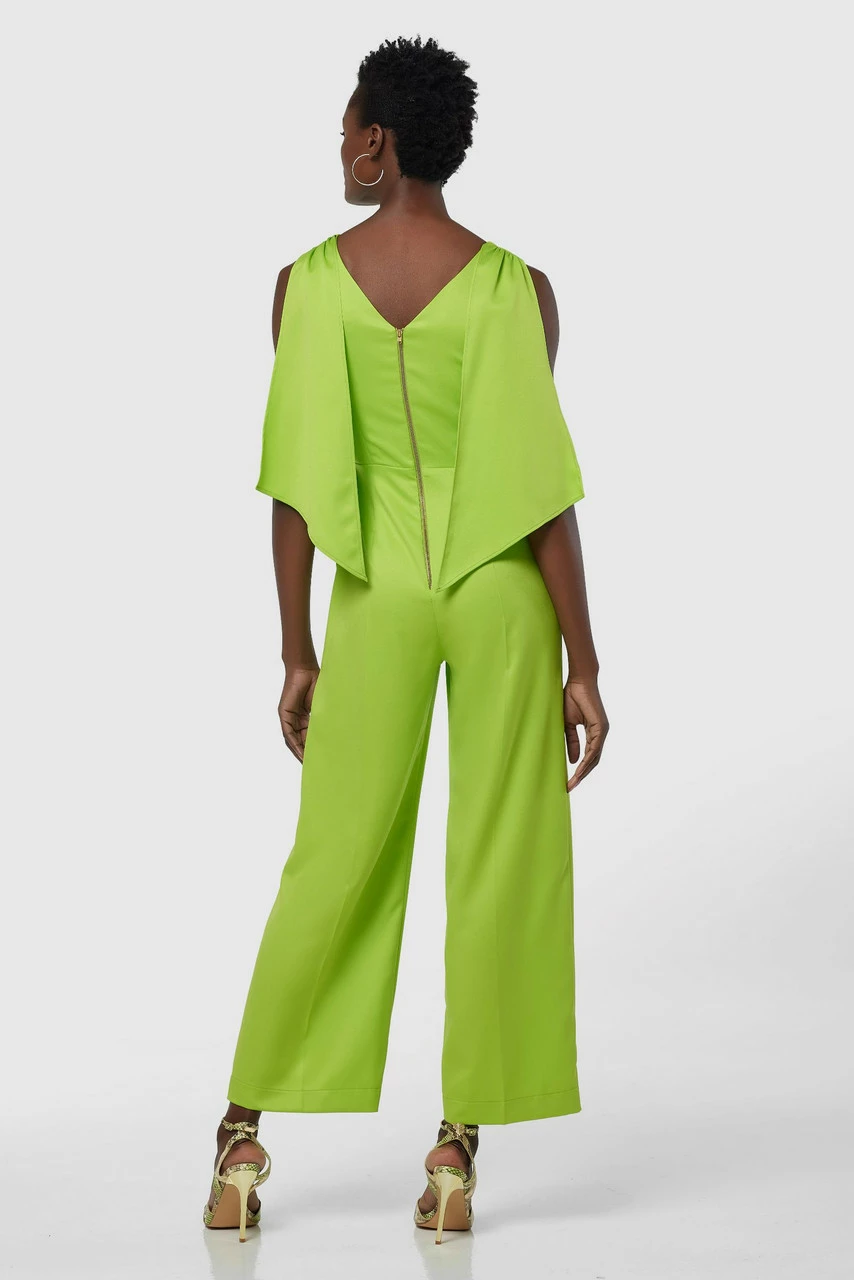 Our Closet Gold draped wrap Jumpsuit with scarf detail on the back.