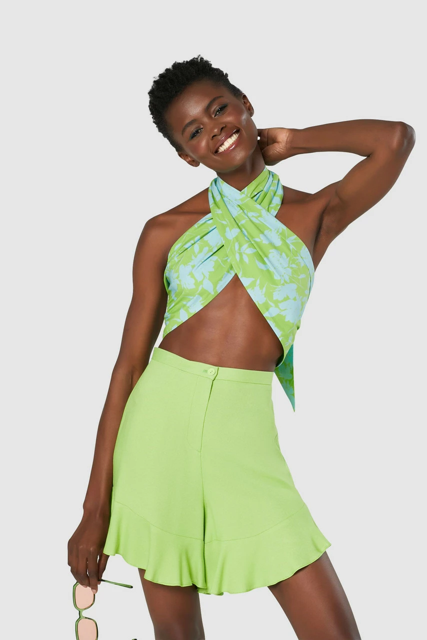 A short with a frill hem in a pretty blue.