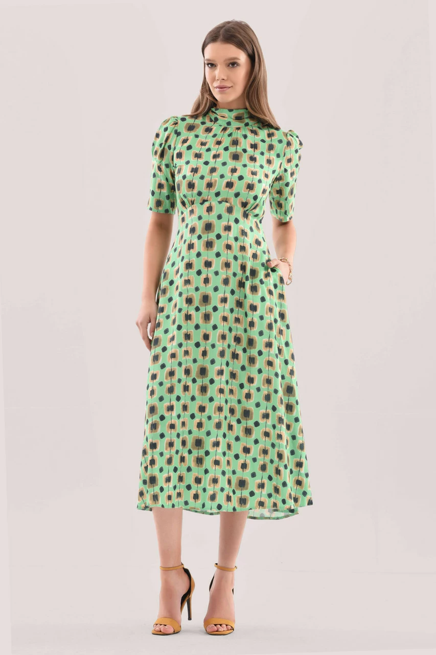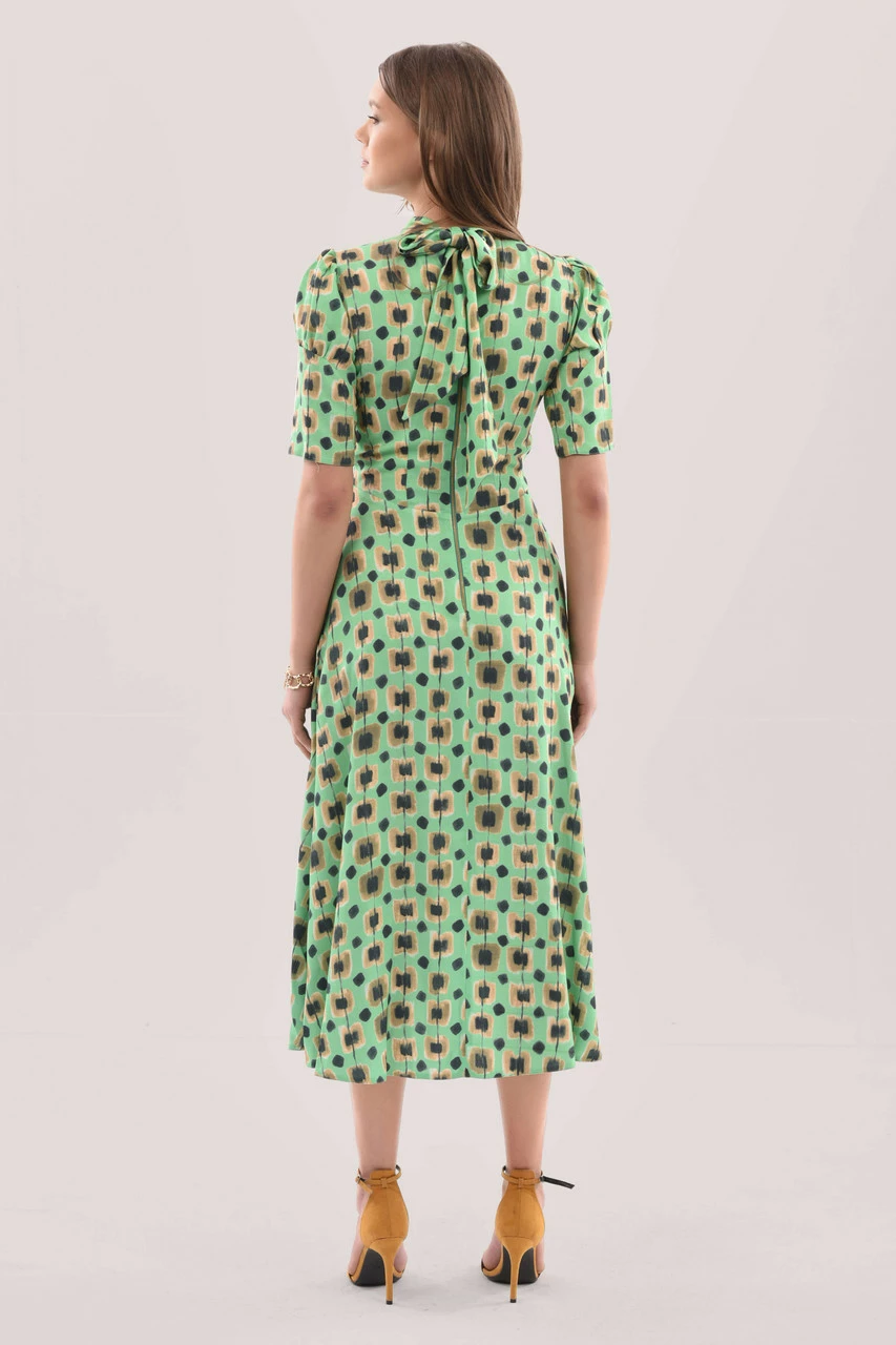 An elegant and versatile dress, designed with a high neck and short sleeves to give a sophisticated finish. The tie front detail adds a feminine touch and makes this style perfect for any occasion