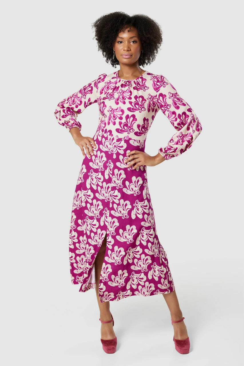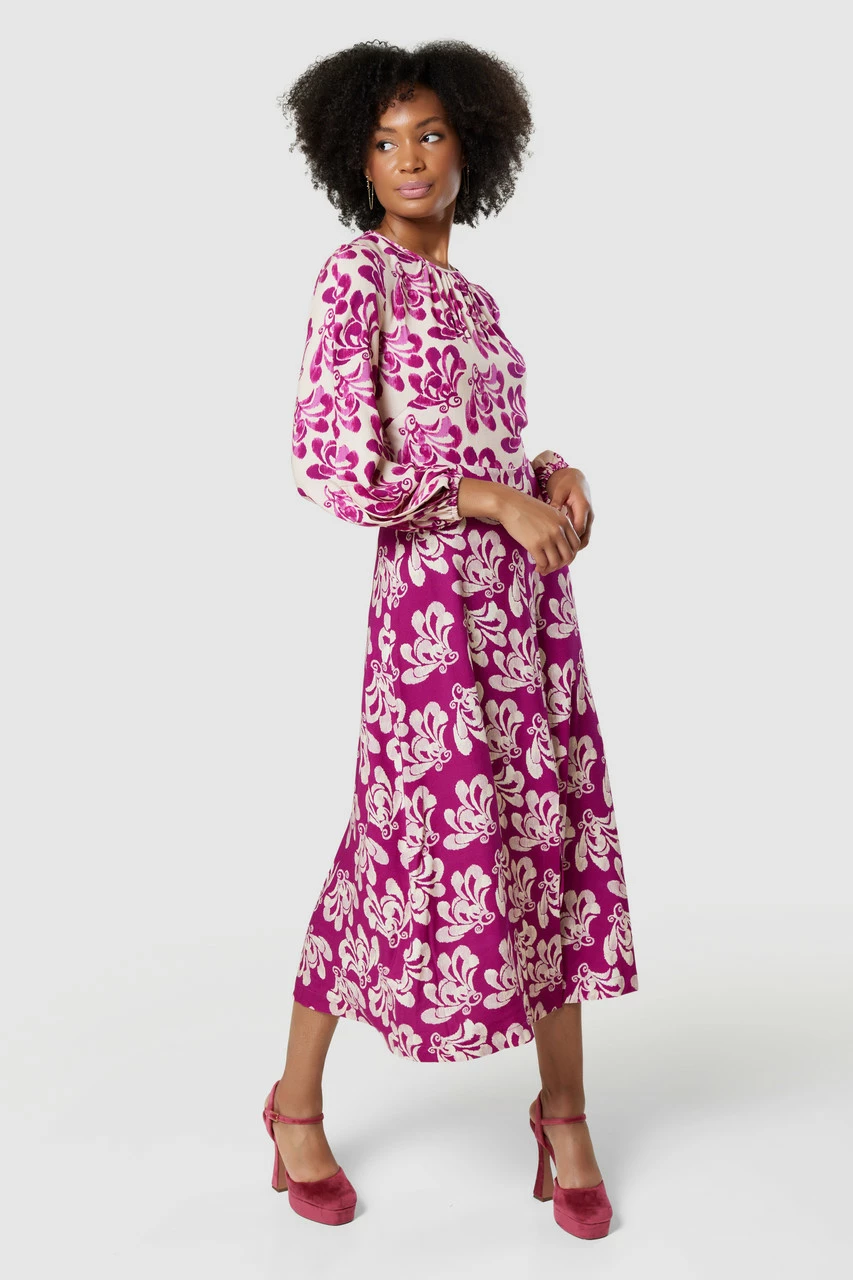 Style: Gathered Neck Midi Dress