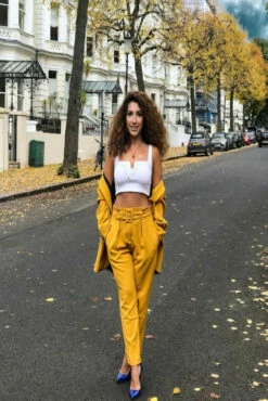 Details: Side pockets, Front pleat, Belt included, Straight leg