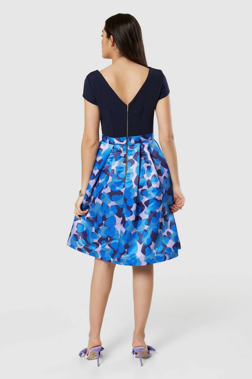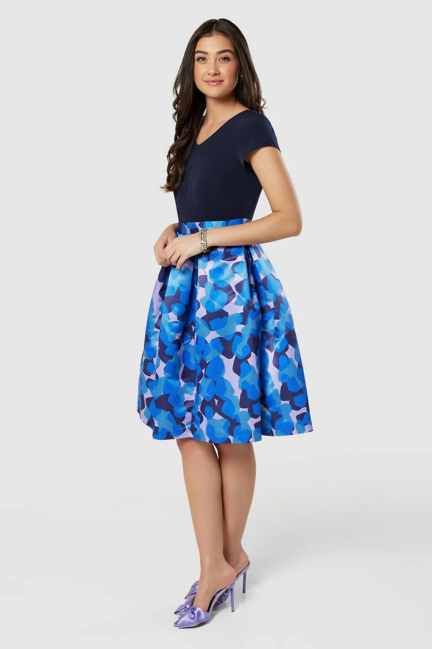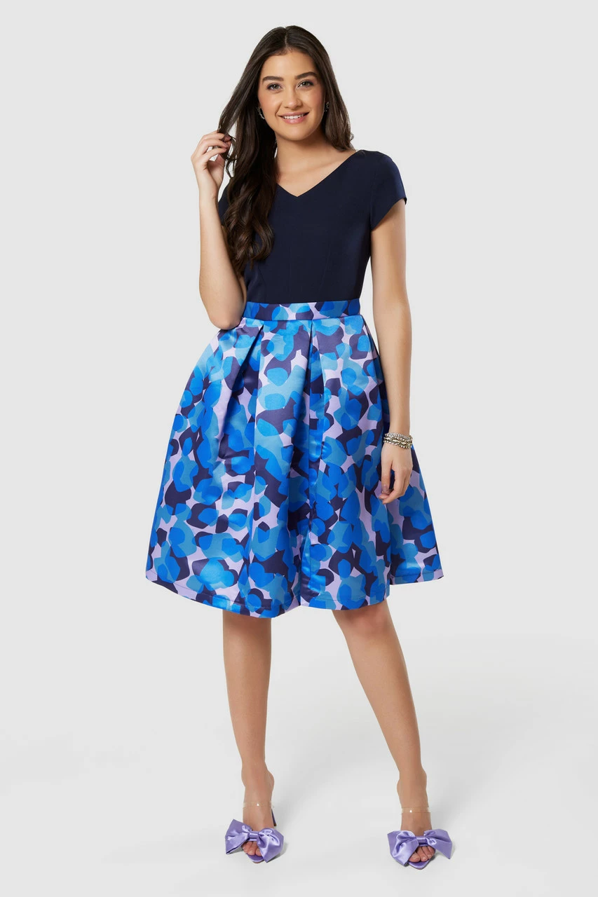 Details: 2 in 1 dress, Box pleats, Floral print skirt, Cap sleeves, Side pockets