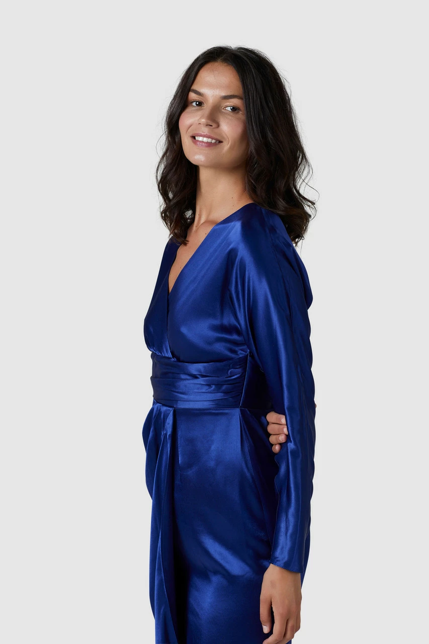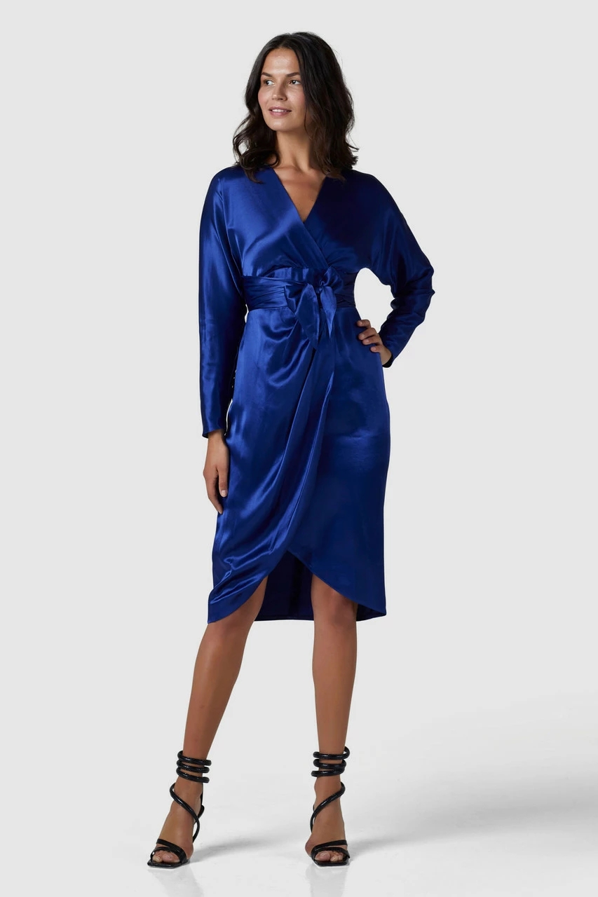 Closet London Kimono Wrap Dress. Our vibrant Kimono shape on a beautiful Ecovero viscose satin. Tie can be worn at the front or back.