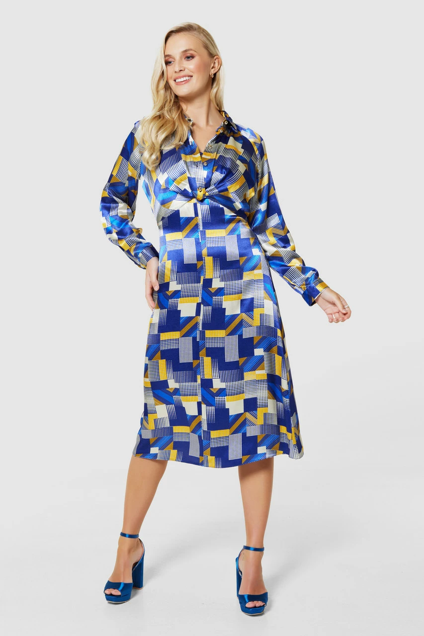 A shirtdress is a classic, but we have elevated this one by cutting it in striking viscose satin and adding a subtle twist. Button it up for a formal event or unbuttoned for a sexier look; its below the knees and has a collar, cuffs, and gold buttons too.
