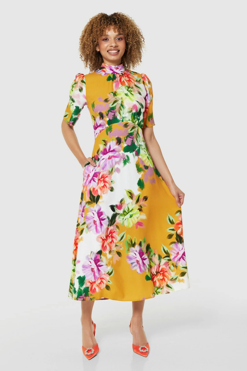 Details: Puff sleeves, Gathers on shoulders & Waist, A- line silhouette, Loose fitting, Side pockets