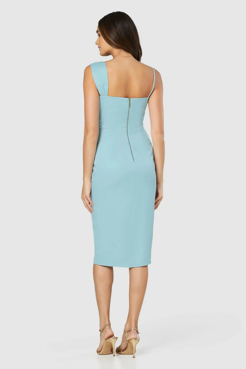 Our Closet Gold asymmetrical cowl Dress with a tulip shaped wrap skirt.