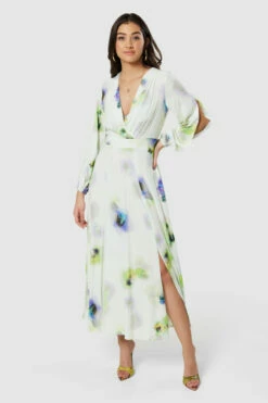 Our bestselling wrap Dress with a full paneled skirt, two front splits in a striking Viscose print.