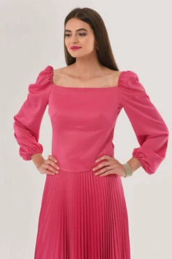 Details: Elasticated shoulders, Puff sleeves, Elasticated cuffs, Bust darts,